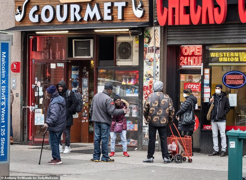 Fotografitë tregojnë të paktën pesë banorë të qytetit të Nju Jorkut që ulen dhe qëndrojnë ngushtë në një stacion autobusi në Harlem, duke mos marrë parasysh udhëzimet e Qendrave për Kontrollin e Sëmundjeve dhe Parandalimin që njerëzit duhet të mbajnë gjashtë këmbë larg