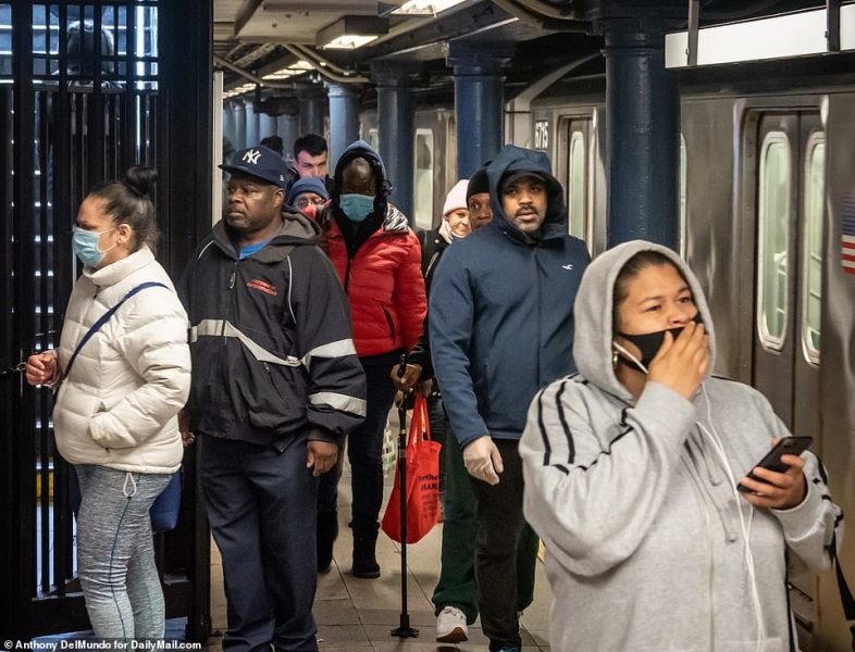 Individë të tjerë u panë të ulur mbrapa në platformën e një stacioni treni dhe në trena. Rastet e konfirmuara të shtetit të Nju Jorkut janë rritur me 9,298 në 75,795 dhe vdekjet janë rritur me 332 në 1.550.