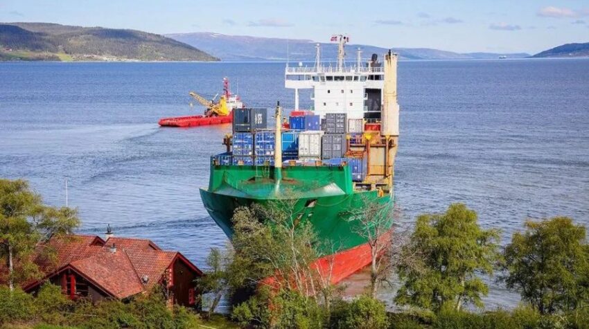 Një ngjarje e pazakontë ka ndodhur në Byneset, pranë qytetit Trondheim në Norvegji, ku një anije e madhe mallrash, 135 metra e gjatë, ka dalë nga kursi dhe është përplasur në breg, duke përfunduar në oborrin e një shtëpie private.