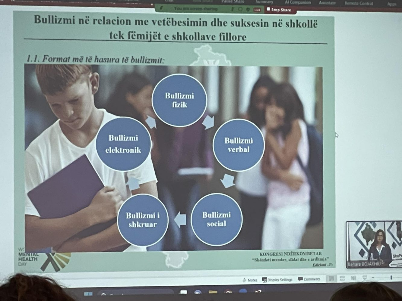 Ndërsa studimi në lidhje me marrëdhënien ndërmjet bullizmit dhe simptomatologjisë depresive në adoleshencë e prezantoi Brulinda Abdyli, psikologe zhvillimi nga Shqipëri.