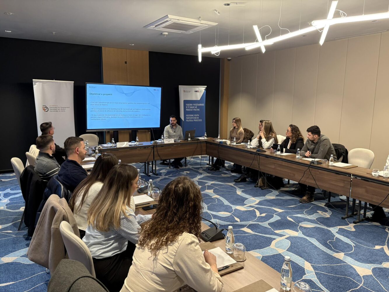 “Aktivitetet pra, siç e përmenda, janë organizimi i punëtorive dhe trajnimeve, mentorim dhe këshillim, pra gjatë gjithë kohës përpos trajnimeve kemi pas takime individuale, kemi pas takime me secilin grup ose individ, që ka pas nevojë për ndonjë këshillë, ose për ndonjë ndihmesë rreth punës së tyre në kuvende komunale, po qoftë edhe në forume rinore. Shumë shpesh kemi bërë edhe takime me kryetarë të forumeve rinore, kemi ndihmuar në qasje edhe në forumet të tjera ndërkombëtare ku janë anëtarësuar forumet rinore, siç është forumi i rajonit ku një pjesë e juaj veçse keni qenë pjesë e gjithë procesit ku jeni anëtarësuar në forumin rajonal. Pjesa tjetër është lehtësimi i dialogut mes përfaqësuesve me përvojë dhe atyre të rinj. Kjo ka qenë kryesisht kur kemi organizuar trajnime ku anëtarët e kuvendeve komunale aktualë janë takuar me të rinjtë e forumeve rinore dhe kanë diskutuar mbi përvojat, një gjë që mbase dhe sot do ta bëjmë në pjesën kur do të na bashkëngjitet edhe Fitimi për pjesën e dytë. Promovimi i angazhimit të të rinjve përmes mediave sociale dhe aktiviteteve në komunitet – këtë pjesë besoj të gjithë i dini të gjitha aktivitetet që kemi bërë, të gjitha iniciativat që kemi marrë ne kemi qenë vazhdimisht duke promovuar. Për ne ka qenë e një rëndësie të madhe që ju si të rinj që jeni aktivë në politikë dhe që merrni iniciativa të ndryshme, qofshin ato individuale por qofshin edhe si grup i partive apo grup në mënyrën e aktivitetit që kemi zhvilluar së bashku, ne kemi tentuar t’i promovojmë dhe t’i vëmë në pah. Një aktivitet që lidhet me këtë ka qenë këtë vit ku kemi organizuar përzgjedhje lokale, debate me kandidatë për anëtarë të kuvendeve komunale”, shtoi ai.