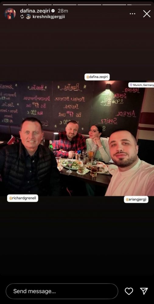 Gjergjaj ka postuar në rrjetin social Instagram duke ngrënë darkë me Grenell, ku përveç Dafinës, prezentë ishte edhe kunati i saj, Arian Gjergjaj.
