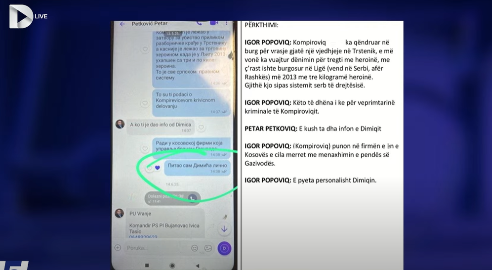 Në maj të vitit 2025, Igor Popoviq komunikon me Petar Petkoviqin lidhur me aktivitetet kriminale të një personi të quajtur Kompiroviq, i cili kishte vuajtur dënim për trafikim me heroine dhe vrasje në Serbi.
