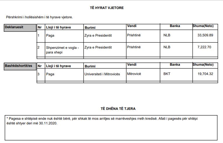 Ndërkohë, bashkëshortja e tij merr rreth 20 mijë euro nga Universiteti i Mitrovicës.