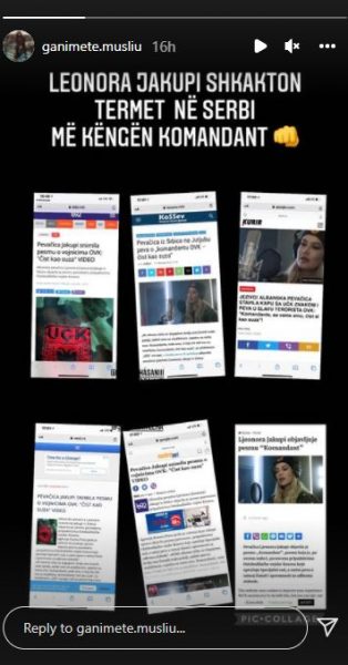 Këto raportime nga ana e portaleve serbe kanë bërë që të reagojë edhe deputetja e PDK-së, Ganimete Musliu, e cila në profilin e saj në Instagram ka postuar disa tituj të mediave serbe.