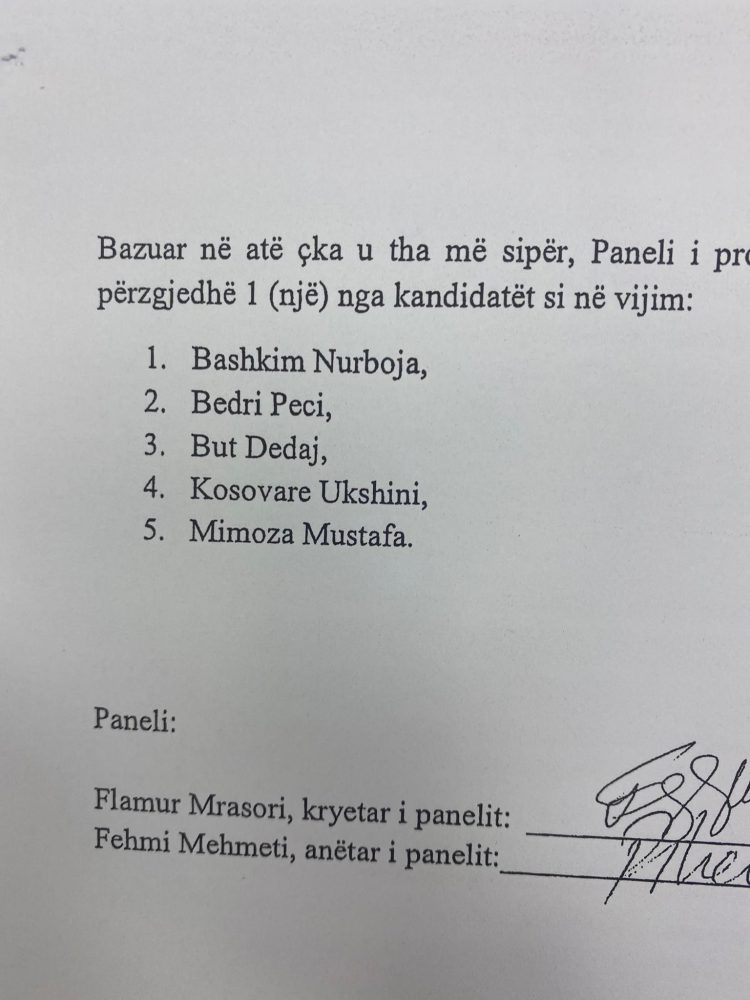 Anëtarët e propozuar janë: Bashkim Nurboja, Bedri Peci, But Dedaj, Kosovare Ukshini dhe Mimoza Mustafa.