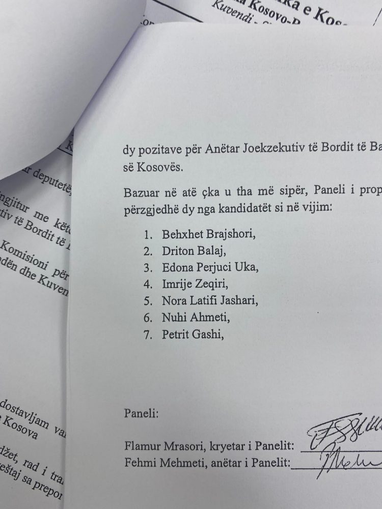 Ndërsa Komisioni, ka miratuar edhe listën tjetër për dy anëtarët joekzekutivi të Bordit të BQK-së.