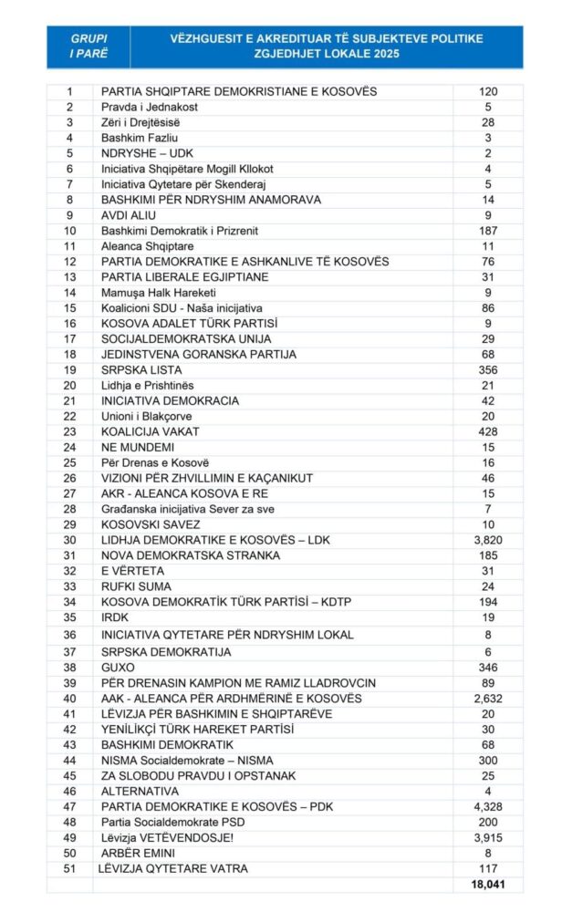 Po ashtu, në këtë mbledhje, KQZ mori vendim për akreditimin e 18,041 vëzhguesve të 51 subjekteve politike të certifikuara për pjesëmarrje në Zgjedhjet Lokale 2025.