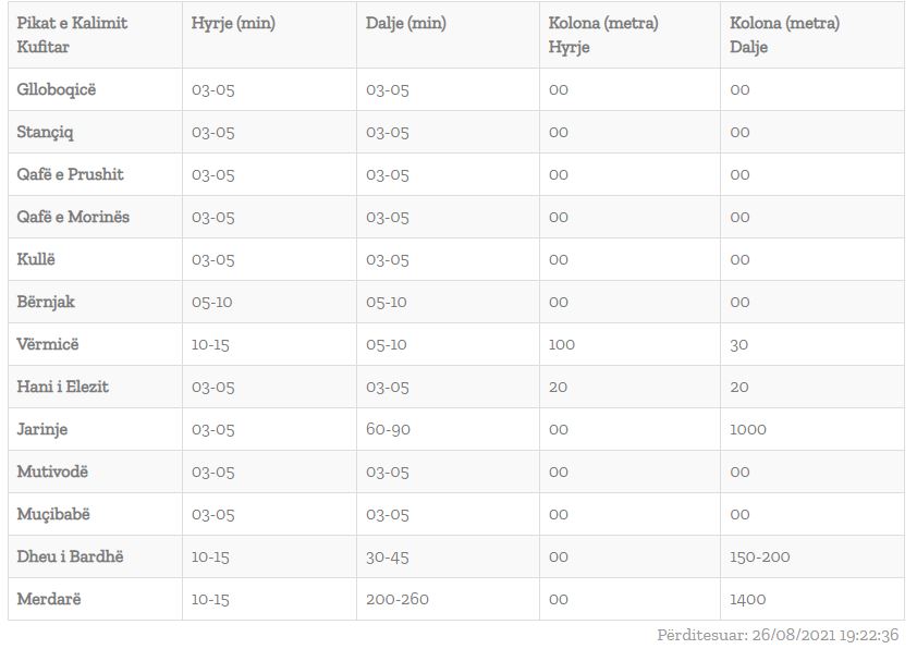 Sipas Ministrisë së Punëve të Brendshme, pritje të gjata ka edhe në pikat tjera kufitare.