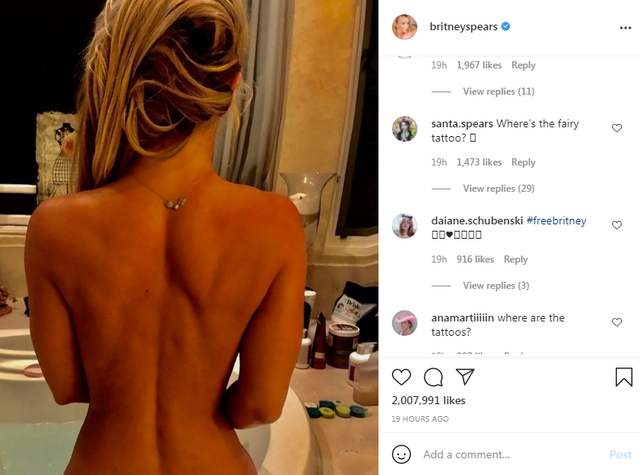 Fansat vunë re menjëherë diçka që s’shkonte me fotot dhe vazhduan me thirrjen “Free Britney”. Shumë filluan të spekulojnë se në të vërtetë nuk ishte Britney në foto.Reklamë