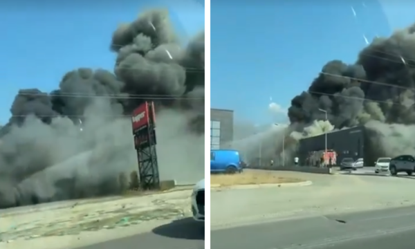 Para pak minutash, një depo e një biznesi në hyrje të Lipjanit është përfshirë nga flakët.