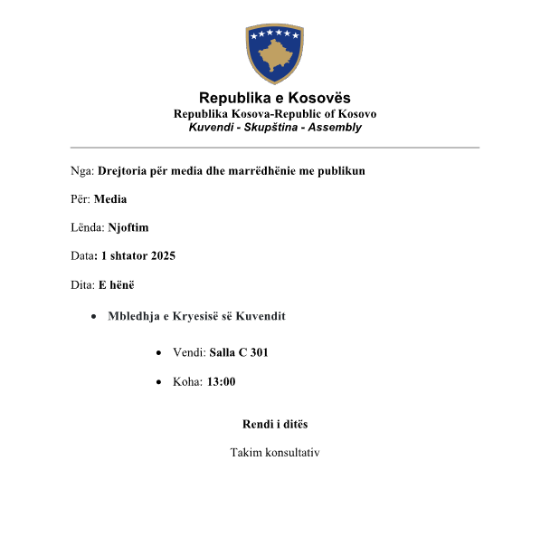 Pika e vetme e rendit të ditës në këtë mbledhje është : Takim konsultativ.