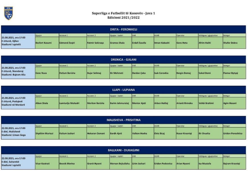 Mirëpo, skuadra nga Klina është përforcuar gjatë kësaj vere dhe s’do mend se shkon në Suharekë për të nxjerrë pikë. Në bazë të vendimeve të reja të Ministrisë së Shëndetësisë, në tribuna mund të qëndrojnë shikues nga 30 për qind i kapacitetit të stadiumit. Të gjitha ndeshjet do të fillojnë në orën 17:00.