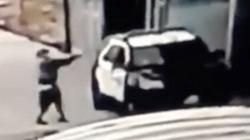 Në videon që është përhapur në rrjetet sociale, një person shihet duke iu afruar veturës së policëve, para se të hapë zjarr dhe të ikë.