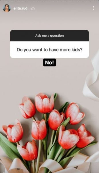 Ndërkohë Elita ka treguar se nuk dëshiron të ketë më fëmijë të tjerë dhe së shpejti mund të rikthehet në ekran.
