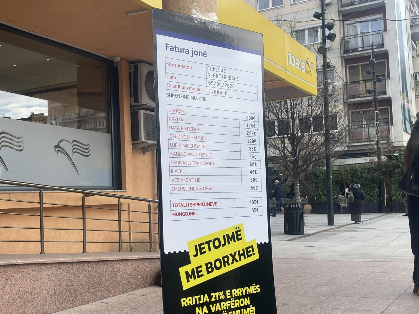 “Sot s’kemi ardhë me pankarta. Kemi ardhë me një faturë. Një faturë që po e ngulfat jetën e qytetarëve çdo muaj. Një familje në Kosovë, me 1000 euro të ardhura mujore, ka 1085 euro shpenzime bazike. Pa luks. Pa pushime. Pa kursime. Vetëm bukë. Vetëm rrymë. Vetëm ngrohje. Vetëm qira, ilaçe dhe shkollë për fëmijët. Minus 85 euro çdo muaj. Çdo muaj fillon me borxhe. Çdo muaj mbyllet me frikë”, tha Syla.