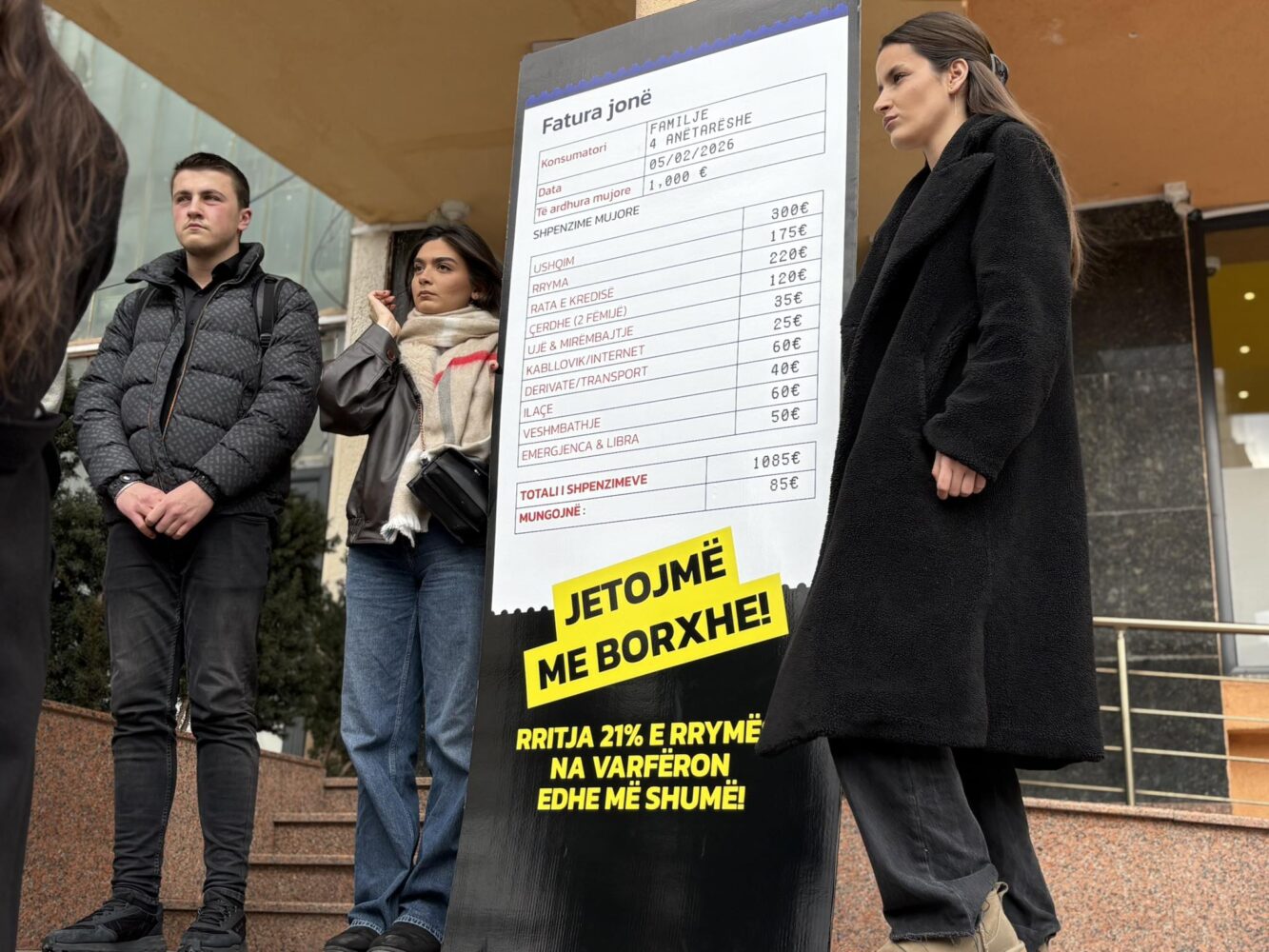 Gjatë aksionit, të rinjtë lanë para Ministrisë një faturë simbolike të përmasave të mëdha, e cila paraqet realitetin e hidhur të çmimeve të larta dhe jetesës me borxhe të familjeve kosovare.