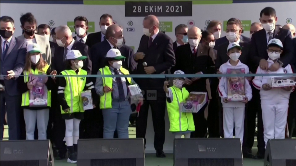 Një vajzë e vogël vuri sërish në provë presidentin turk, Recep Tayyip Erdogan, duke prerë shiritin në një ceremoni inaugurimi para tij.