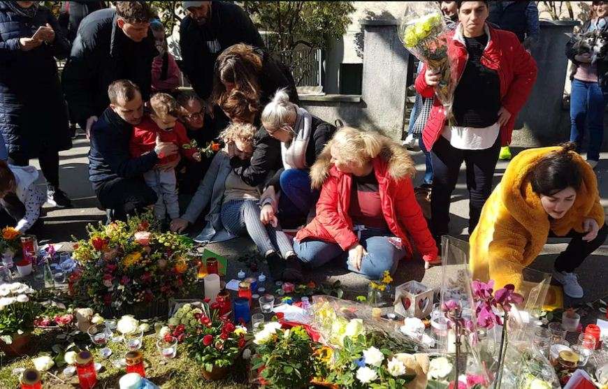 Nëna e cila nuk mund të mbajë lotët dhe babai me vëllanë që mezi qëndrojnë në këmbë, janë para luleve dhe qirinjve që qytetarët kanë vendosur në kujtim të 7-vjeçarit.