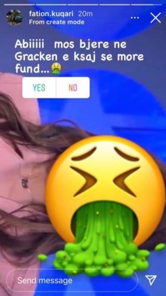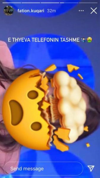 Në një tjetër postim, duke mbuluar fytyrën e Sindit, Fationi shkruan se do ta thyejë telefonin, duke lënë të kuptohet se nuk e duron dot Sindin.
