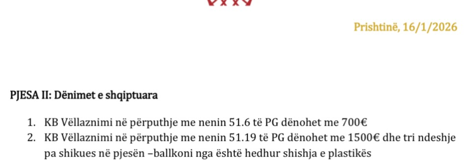 Me këtë rast, KB Vëllaznimi është dënuar me gjobë prej 2200 euro në total dhe tre ndeshje pa shikues në pjesën e balkonit, nga ku është hedhur shishja e plastikës.