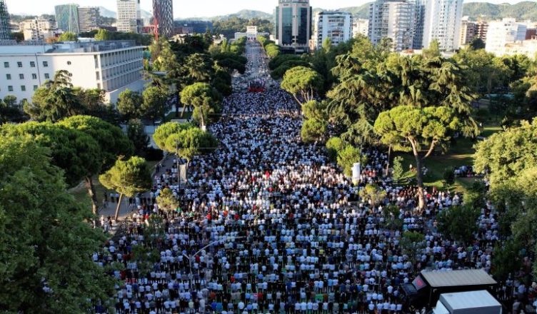 Ceremonia kryesore e faljes në Tiranë u zhvillua në bulevardin “Dëshmorët e Kombit”, ku morën pjesë besimtarë nga kryeqyteti dhe më gjerë.