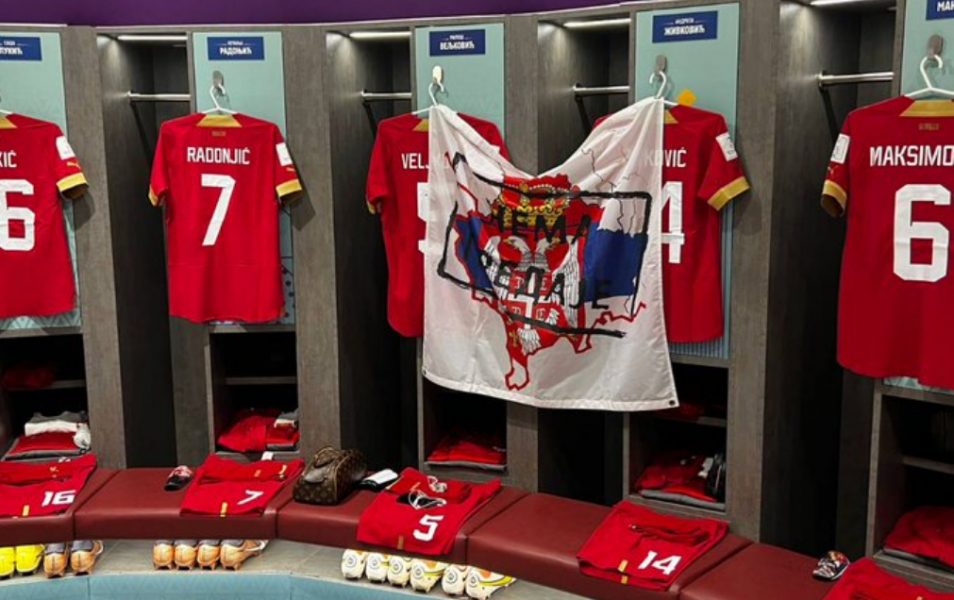 Para kësaj ndeshjeje, në zhveshtoren e kombëtares së Serbisë është vendosur një flamur, ku shihej harta e Kosovës me ngjyrat e flamurit serb, me mbishkrimin “Nuk ka dorëzim”.