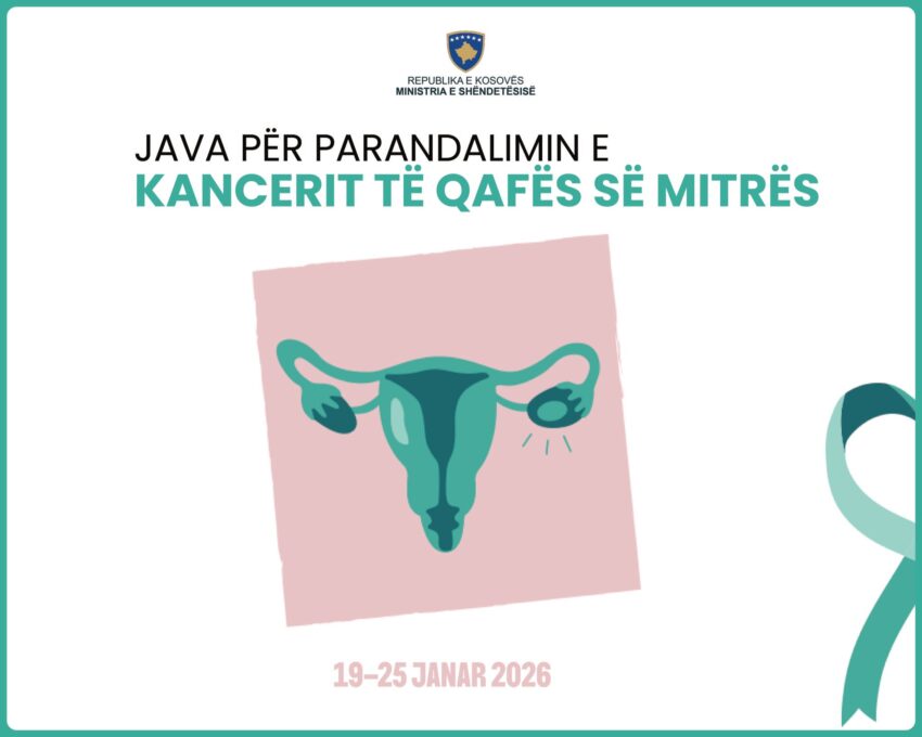 “Java e Vetëdijesimit për Kancerin e Qafës së Mitrës shënon një angazhim të vazhdueshëm institucional për rritjen e informimit dhe ndërgjegjësimit të qytetarëve mbi këtë sëmundje, me theks të veçantë në parandalimin, zbulimin e hershëm, diagnostikimin dhe trajtimin në kohë. Kanceri i qafës së mitrës është një tumor malinj që zhvillohet në cerviks dhe përbën një nga format më të shpeshta të kancerit tek gratë në nivel global. Shkaktari kryesor i kësaj sëmundjeje është infeksioni me Human Papillomavirus (HPV), ndërsa faktorët e rrezikut lidhen kryesisht me infeksione të patrajtuara, seksualisht të transmetueshme dhe infeksione të vazhdueshme me tipe të caktuara të HPV-së. Sipas të dhënave globale, gjatë vitit 2022 janë regjistruar rreth 660 mijë raste të reja dhe rreth 350 mijë vdekje nga kanceri i qafës së mitrës. Në Kosovë, sipas Institutit Kombëtar të Shëndetësisë Publike, gjatë vitit 2024 janë regjistruar 140 raste, që përbëjnë rreth 3 për qind të të gjitha rasteve të kancerit”, thuhet në njoftimin e MSH-së.