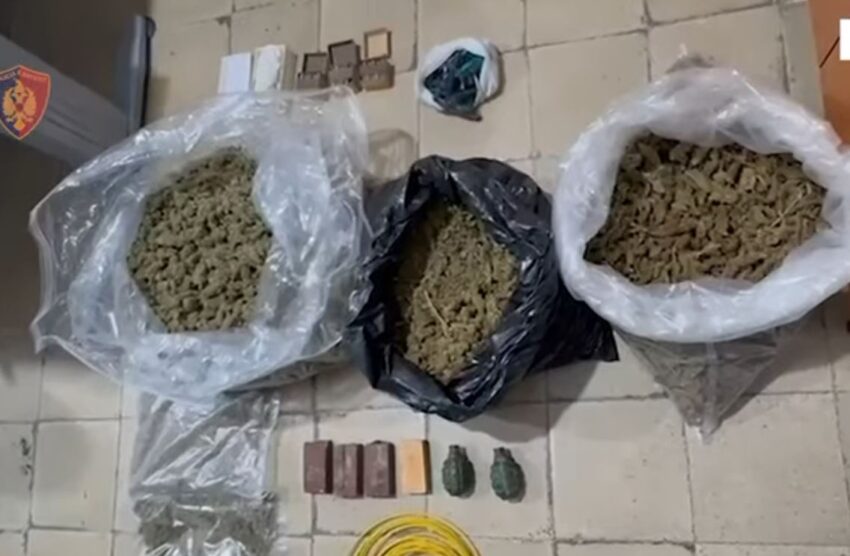 Gjatë kontrollit në banesën e 27-vjeçarit, në Tiranë, u gjetën 1 kg lëndë e dyshuar narkotike kanabis, 1 peshore elektronike, 1 shufër metalike dhe 1 armë e ftohtë (thikë)”.