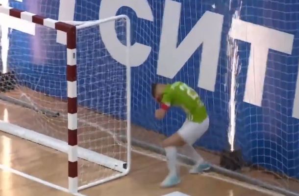 Gjatë një ndeshjeje në Republikën Komi të Rusisë, lojtari i Ukhta-s, Dmitry Khusainov, e gjeti veten direkt mbi një instalim piroteknik.