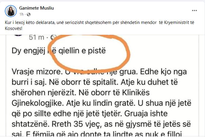 E pas këtij reagimi, deputetja Musliu në një postim të bërë në Facebook, ka shkruar se “shqetësohet për shëndetin mendor të kryeministrit”.
