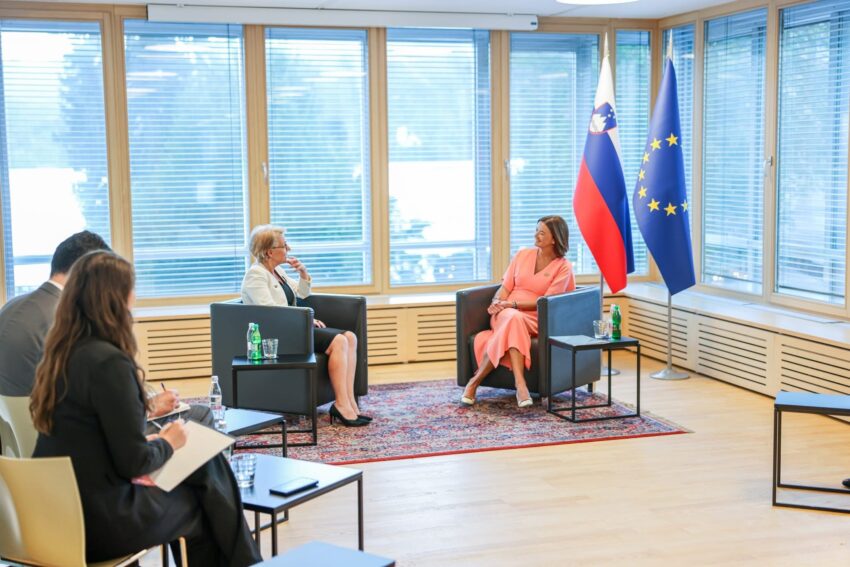 Në kuadër të punimeve të Forumit Strategjik të Bledit, Zëvendëskryeministrja dhe Ministrja në detyrë e Punëve të Jashtme dhe Diasporës, Donika Gërvalla, zhvilloi një takim me Zëvendëskryeministren dhe Ministren e Punëve të Jashtme dhe Evropiane të Sllovenisë, znj. Tanja Fajon.