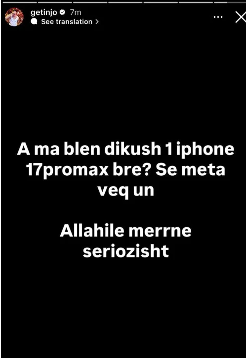 Getinjo me kërkesë për ndjekësit: Më blini një Iphone 17 Pro Max, vetëm unë kam mbetur