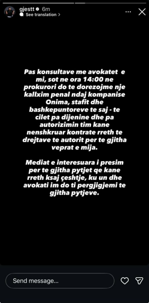 Ky kallëzim penal është bërë në konsultim me avokatët e artistit, Artan Çerkini e Burzim Azemi.