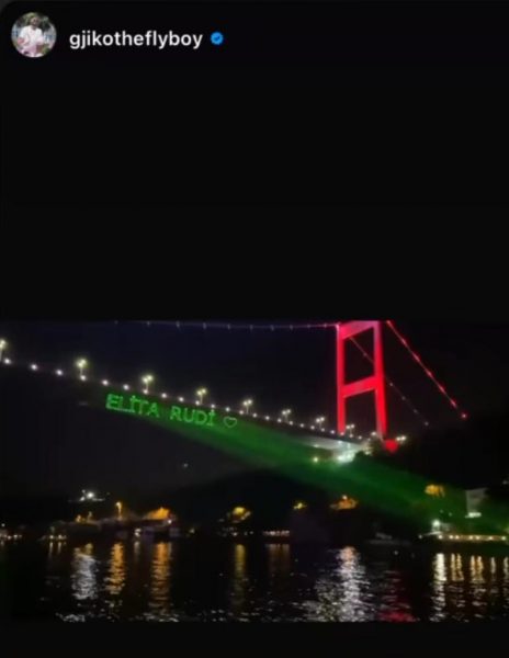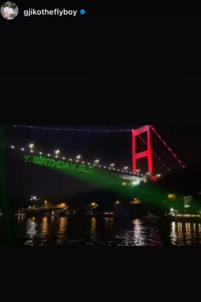 Çifti kishte zgjedhur Stambollin si destinacionin e festimeve. Moderatorja u surprizua nga dedikimi në urën e Bosforës. “Gëzuar ditëlindjen Elita. Gjiko të do!”, projektohej në urën simbol të Stambollit.