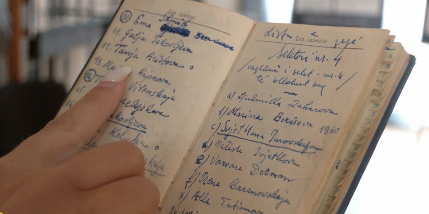 “Një nga këndet më të veçanta të shtëpisë ku jetoi Ismail Kadare është kjo hapësirë këtu, ku ruhen shënimet dhe kujtimet e shkrimtarit. Në këtë bllok Kadare ka shënuar emrat e vajzave ruse që ka njohur gjatë studimeve në Moskë.”