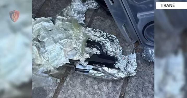 Po ashtu policia bën me dije se është sekuestruar një armë zjarri pistoletë me silenciator, e ndarë në pjesë dhe e fshehur brenda një televizori.