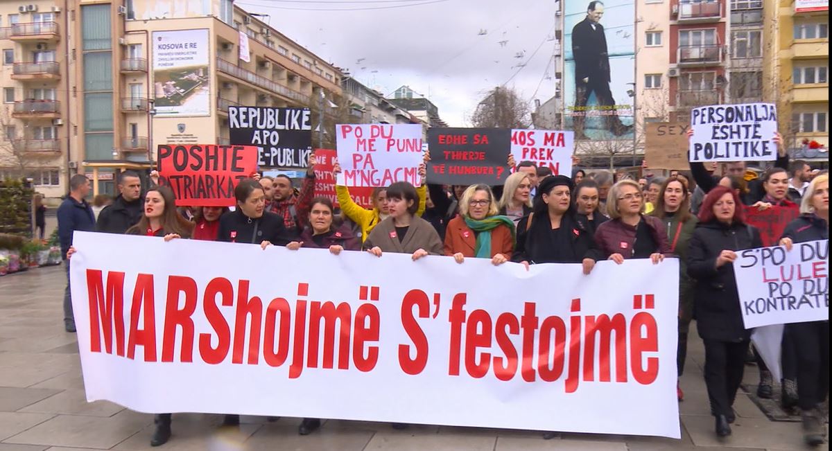 Me moton “Marshojmë s’festojmë”, dhjetëra gra e disa burra, protestuan sot në Prishtinë, në Ditën Ndërkombëtare të Gruas – 8 Mars.