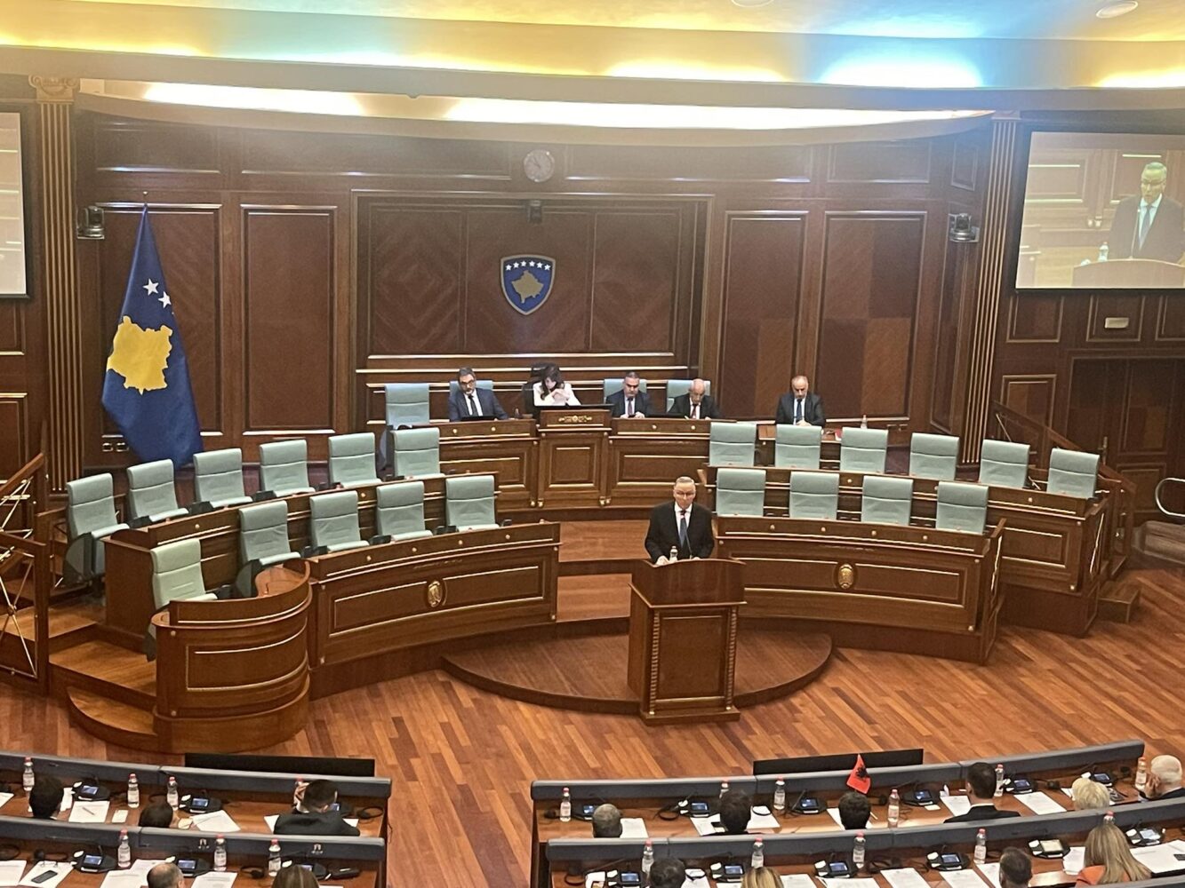 “E dëgjova ekapozen e Kurti. Është e saktë që janë rritë eksportet, por nuk është e mjaftueshme me u përmend që janë rritë eksportet pa i përmend që janë rritë importet. Qysh të themi t’lut, është thellu deficiti tregtar. Që shumë indikatorë financiarë dhe makroekonomikë nuk janë në trendin e duhur. Që likuiditeti në sektorin bankar është çdo ditë duke u zvogëlu. Si rezultat i zvogëlimit të likuiditetit, janë duke u rritur edhe normat e interesit. Sigurisht se borxhi i brendshëm mes ndërmarrjeve paraqet një çështje shumë serioze. Çështjen e lëvizjeve demografike duhet me e kuptu si shumë të drejtë përndryshe Kosova po zbrazet, si rezultat i zvogëlimit të natalitetit dhe emigracionit. Po besoj që këtu do të kemi mundësi që do t’i diskutojmë detajshëm në seancat e radhës. Dhe si Partia Demokratike e Kosovës, do ta mbështesim çdo iniciativë që është në interes të qytetarëve dhe të shtetit. Por njëkohësisht, këtu në Kuvend, në shesh dhe kudo, para qytetarëve do ta mbrojmë interesin publik dhe shtetëror të Republikës së Kosovës”, tha ai.