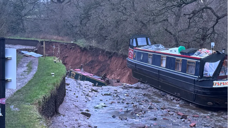 Në Shropshire është shpallur gjendje e jashtëzakonshme pasi një vrimë e madhe u hap në një kanal, e përshkruar nga policia si një gropë. Dy anije ranë në vrimë, ndërsa dy të tjera mbetën të varura në mënyrë të rrezikshme në buzë.