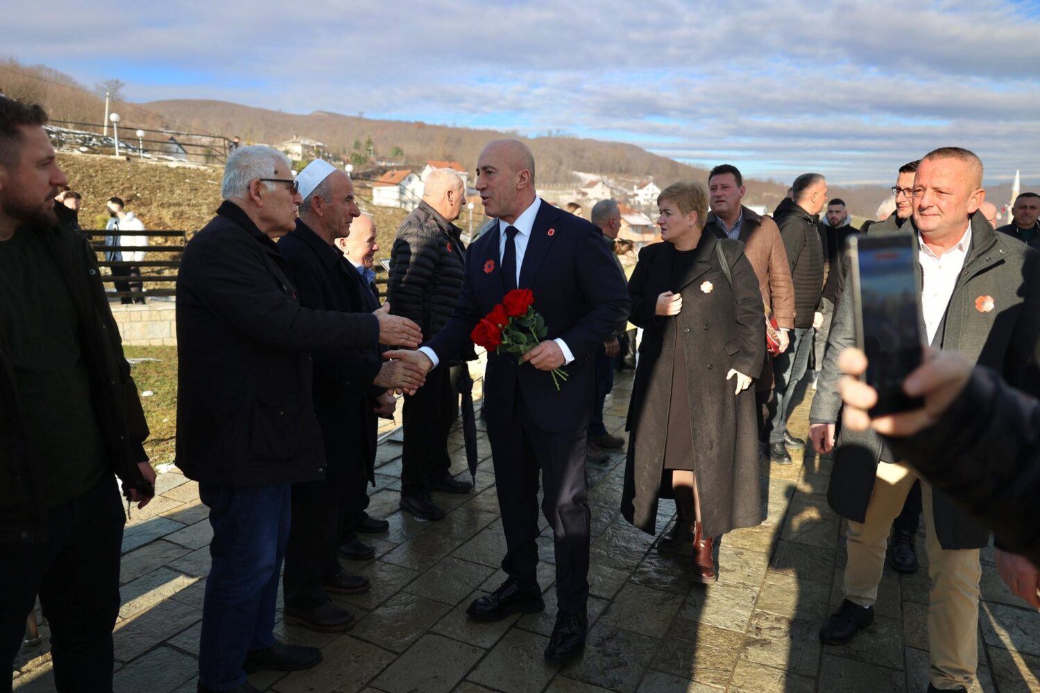 “Sot nderojmë në vendin edhe pranë trupave të dashurve tanë, atyre që u flijuan për liri. Në vendin e masakrës së Reçakut, masakrës që ktheu vëmendjen e NATO-së, Amerikës për krimet serbe në Kosovë. I jemi mirënjohës UCK dhe gjithë brezave që luftuan për liri. Përkulemi me respekt për jetë para të rënëve në liri ashtu siç përkulemi në Prekaz dhe çdo kudo u kanë rënë të dashurit tanë për lirinë e Kosovës dhe përjetësisht mirënjohës NATO-s dhe Amerikës për ndihmën që ta gëzojmë lirinë”, tha Haradinaj.