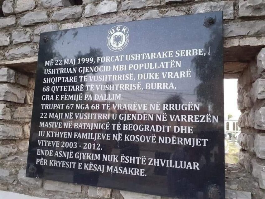 Ai ka përkujtuar edhe masakrën e 22 majit në Vushtrri, ku forcat serbe ekzekutuan pa mëshirë burra, gra, pleq e fëmijë. “Trupat e 67 nga 68 të vrarët në rrugën ‘22 Maji’ u gjetën më vonë në varrezat masive në Serbi, gjatë viteve 2003-2012”, theksoi ai.