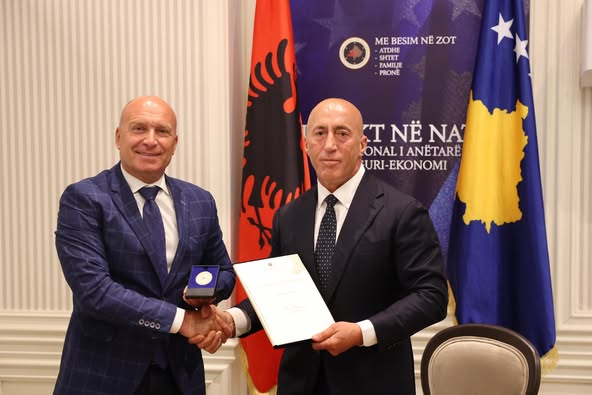 Në shenjë mirënjohjeje për kontributin e tij të palëkundur në shërbim të atdheut, pata nderin t’ia ndaj Medaljen “Me besim në Zot, Atdhe e Shtet”, shkroi në Facebook, Haradinaj.