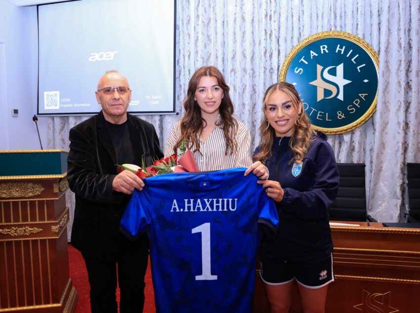Kryetarja e Kuvendit njëherit u.d. e presidentes së Kosovës, Albulena Haxhiu në prag të ndeshjes ndërmjet Kosovës dhe Bullgarisë, ka vizituar kampin e Kombëtares së Kosovës në konkurrencën e vajzave.
