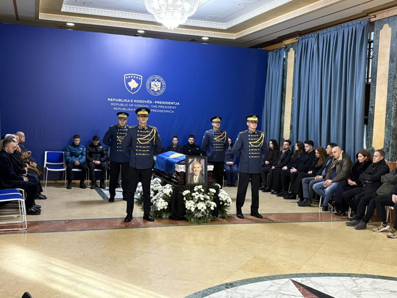 Homazhet po zhvillohen në praninë e familjarëve, përfaqësuesve institucionalë, bashkëpunëtorëve dhe qytetarëve, të cilët po bëjnë nderimet për të ndjerin.