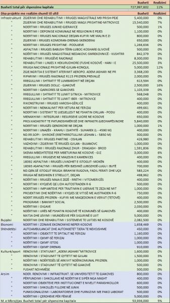 Hoti ka publikuar edhe listën e disa prej projekteve për të cilat thotëse janë në realizim shumë të ulët.