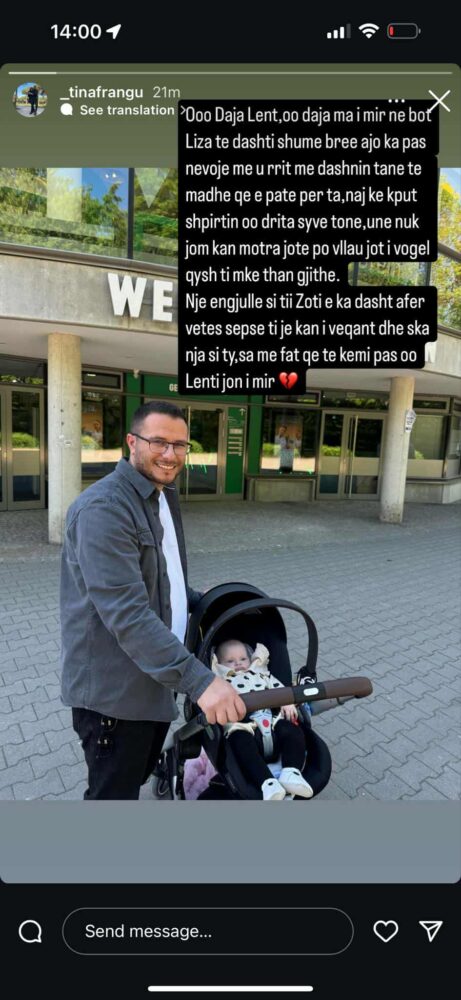 “O daja Lent, o daja më i mirë në botë… Liza të deshi shumë. Ajo kishte nevojë të rritej me dashurinë tënde të madhe që kishe për të. Na ke këputur shpirtin, o drita e syve tanë… Një engjëll si ti, Zoti e ka dashur pranë vetes.”