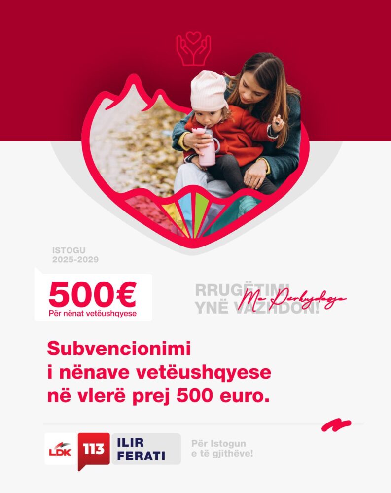 “Subvencion prej 500€ për nënat vetëushqyese, përkrahje sociale dhe barazi për të gjithë. Rrugëtimi ynë vazhdon me përkujdesje!”, ka shkruar ai.