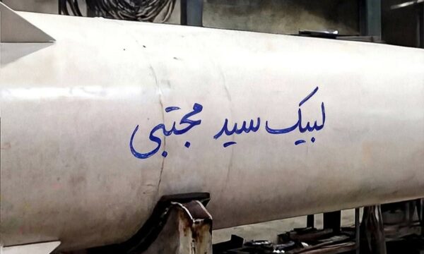 Një fotografi u shfaq që tregonte një predhë të shënuar me fjalët: “Në shërbimin tuaj, Sayyid Mojtaba”.