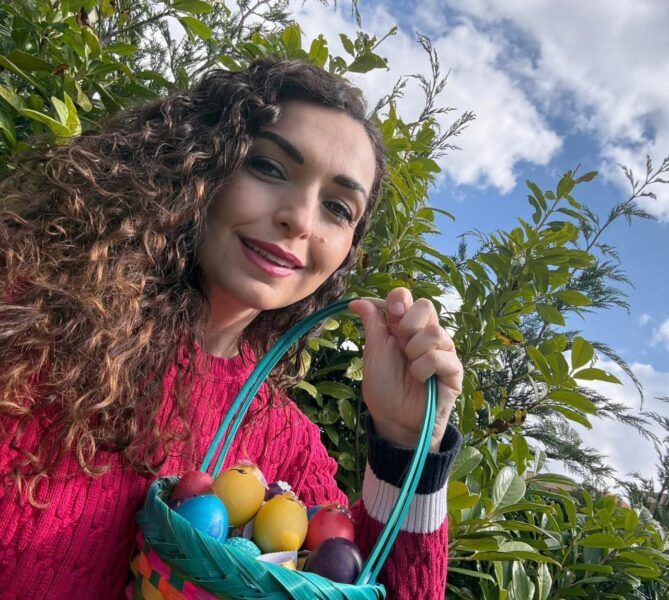 Osmani publikoi gjithashtu një fotografi të saj duke mbajtur në dorë një shportë të vogël të mbushur me vezë të ngjyrosura, simbol tradicional i Pashkëve.
